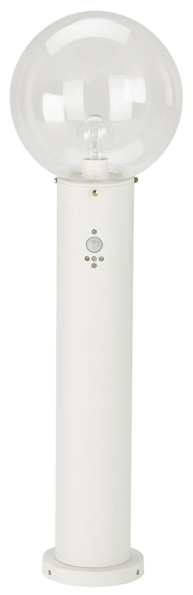 Pollerleuchte für Terrasse und Garten mit Kugel aus klarem Blasenglas