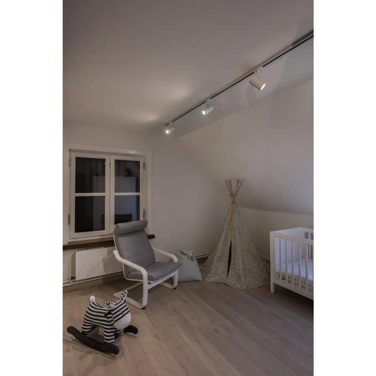 Der puristische Schienenstrahler ENOLA B besteht aus einer Aluminium- und Stahlkonstruktion und ist wahlweise verfügbar in den Gehäusefarben weiß, schwarz, und silbergrau.
