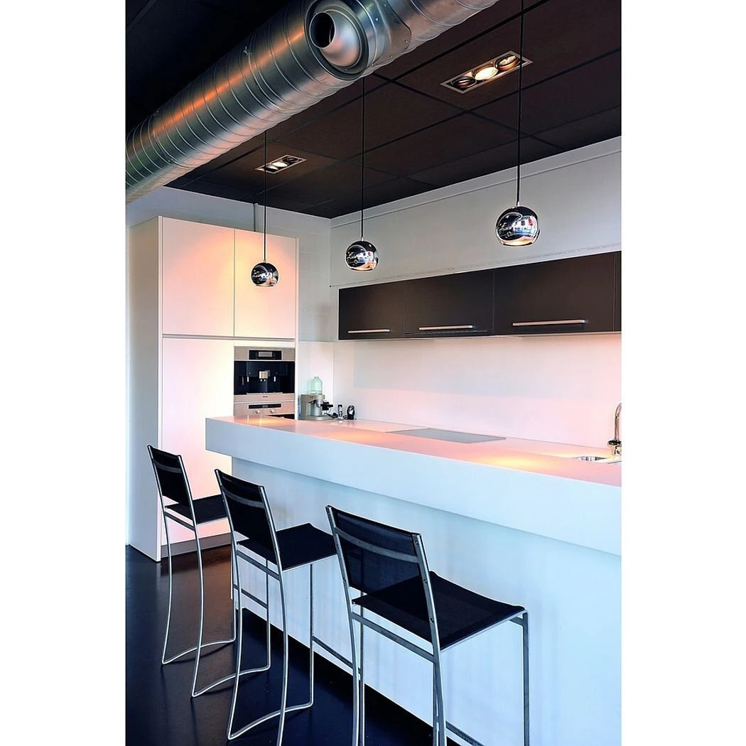 Das beliebte Design der LIGHT EYE Serie als Pendelleuchte für die Aufnahme von Hochvolthalogenleuchtmitteln des Typs ES111. Die mit einer 150 cm langen Abhängung versehene Pendelleuchte ist erhältlich in den Gehäusefarben chrom und weiß und verfügt über eine farblich passende Deckenrosette.